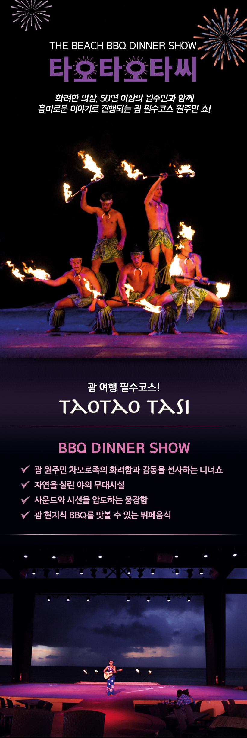 괌 타오타오타씨 디너쇼 선셋 더비치 바베큐 공연 맛집 예약 할인권