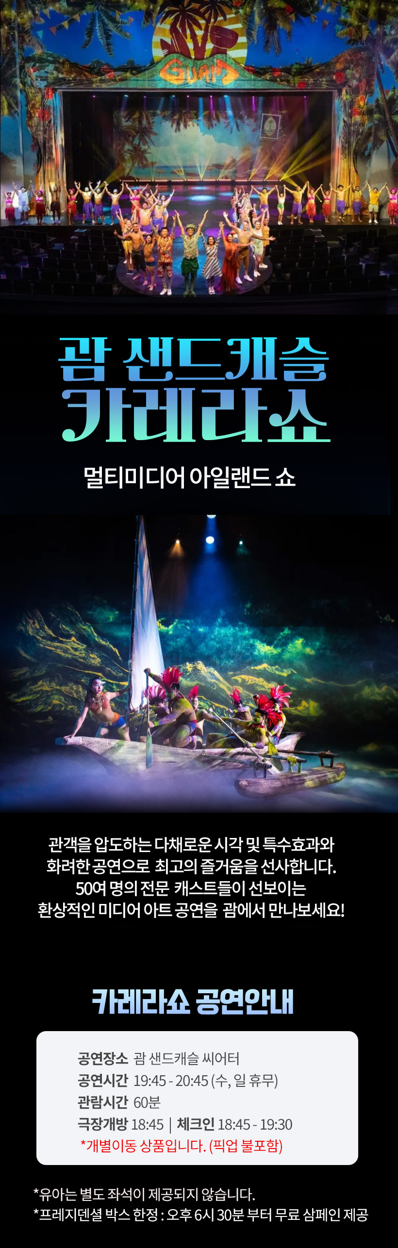 괌 신규 상품. 괌 아르떼 멀티미디어 아일랜드 쇼. 500석 수용.