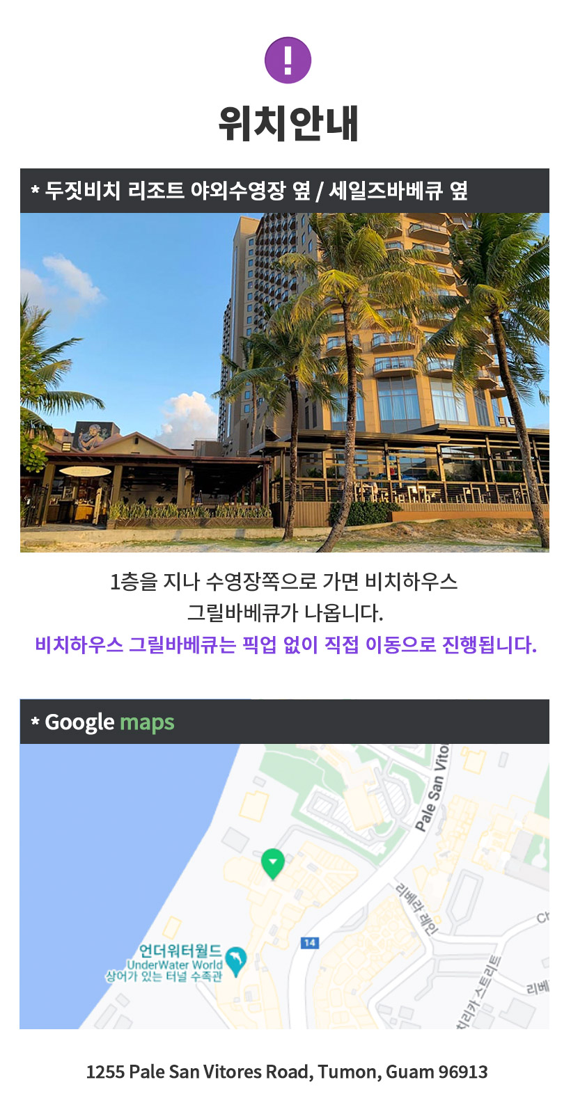 - 변경 및 취소는 은 괌플레이의 규정을 따라주셔야 합니다. (현장 변경 및 취소 불가)