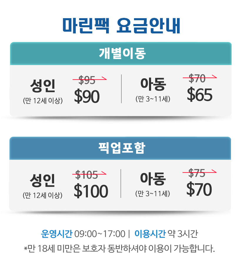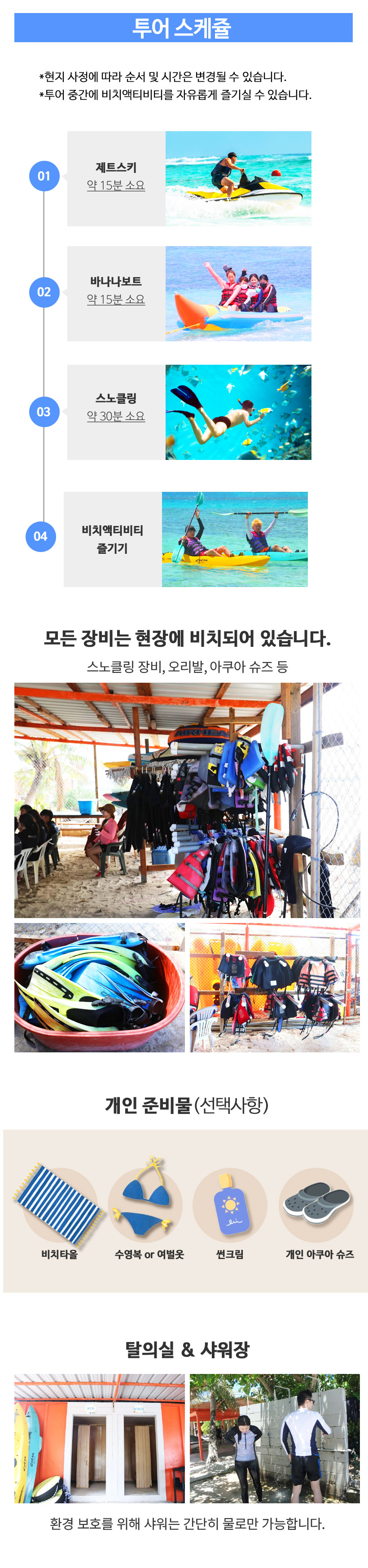 - 안전장비를 반드시 착용해야 하며 안전요원의 보호 없이 바다 뛰어드는 행위는 금지합니다.