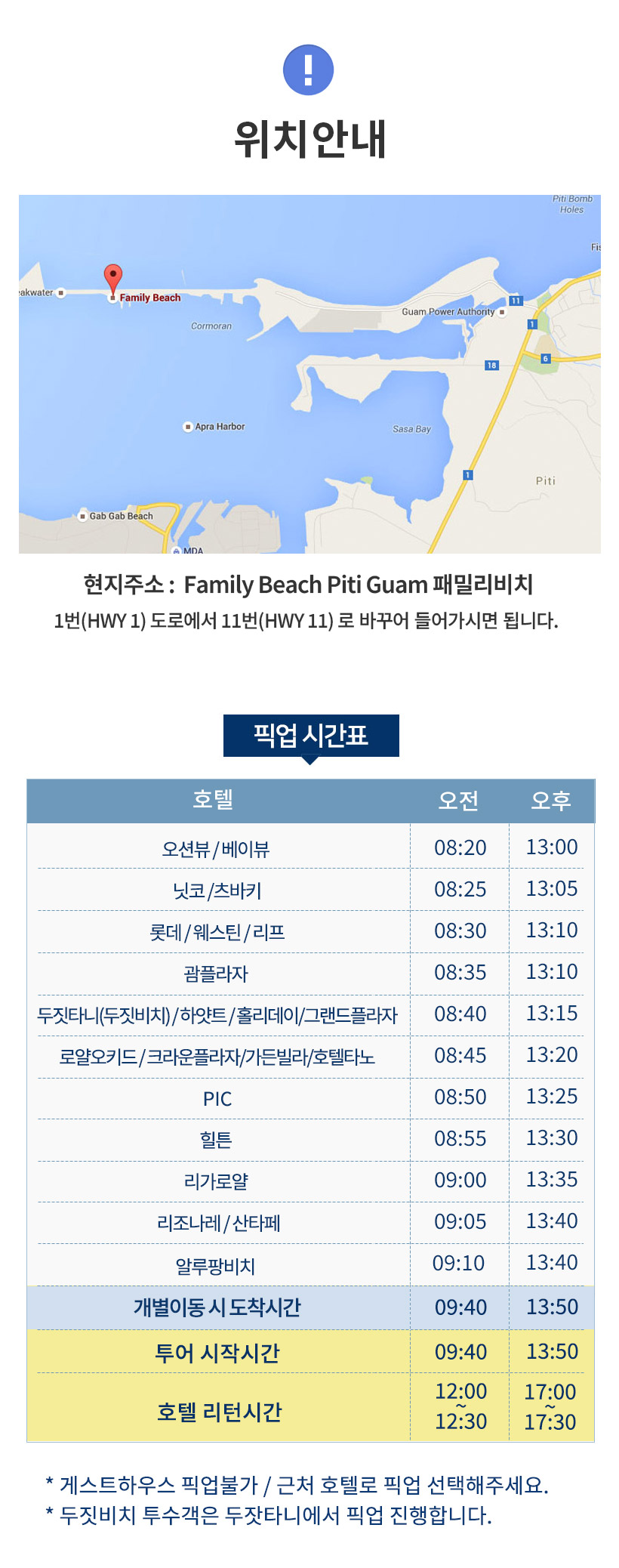 개별이동시 - 구글검색: Family Beach Piti Guam (패밀리 비치) 를 검색해주세요
