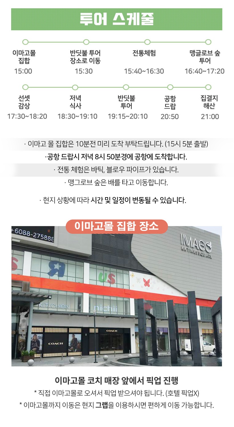 - 픽업 시간에 늦어 투어를 이용하시지 못할 경우 코타플레이와 현지업체는 책임이 없음을 안내해드립니다.
