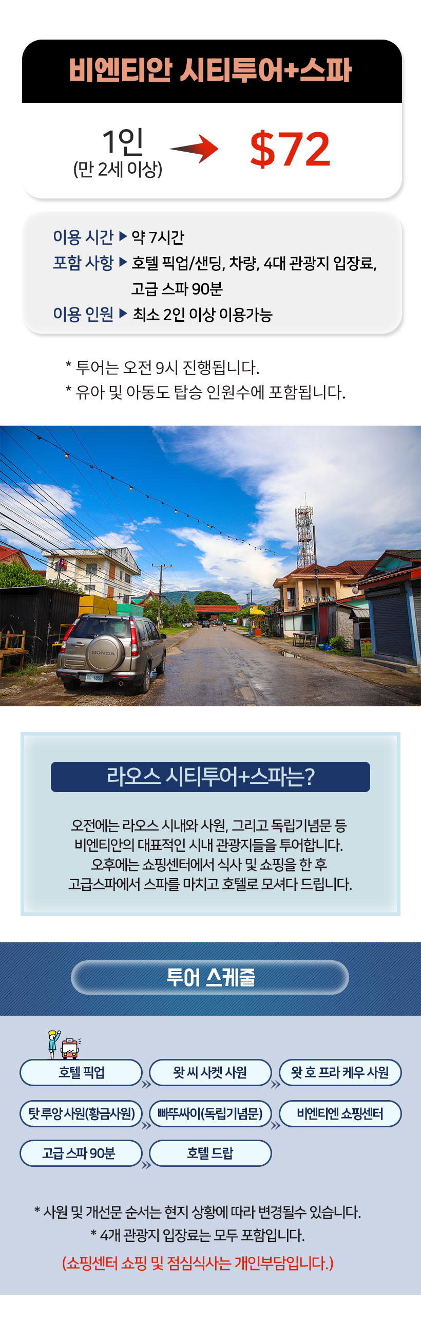 - 비엔티안 이곳저곳 편하게 투어하며 끝나고 스파로 하루의 피로를 싹~ 녹여보세요