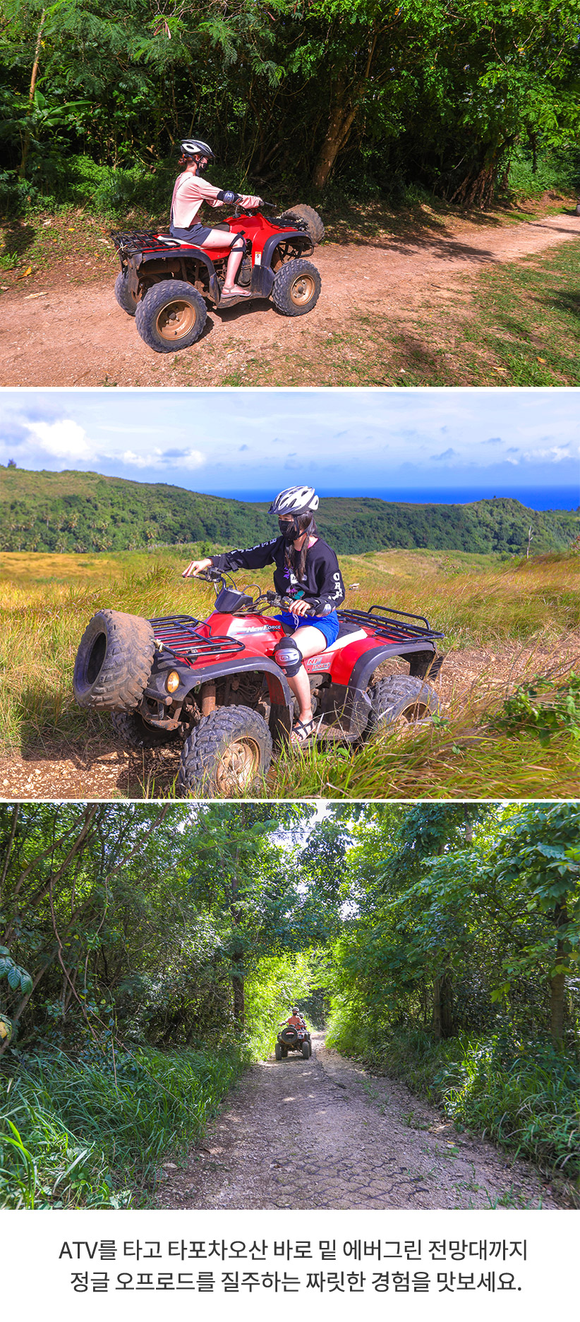 - ATV 운행시 전장비를 착용해야 하며, 현지 직원의 안내에 따라 안전 수칙을 지켜주세요.