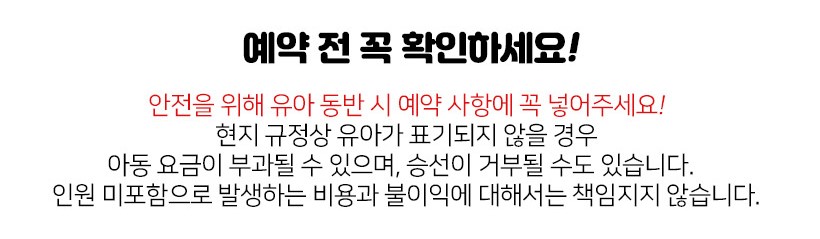 - 픽업 시간에 늦어 투어를 이용하시지 못할 경우 코타플레이와 현지업체는 책임이 없음을 안내해드립니다.