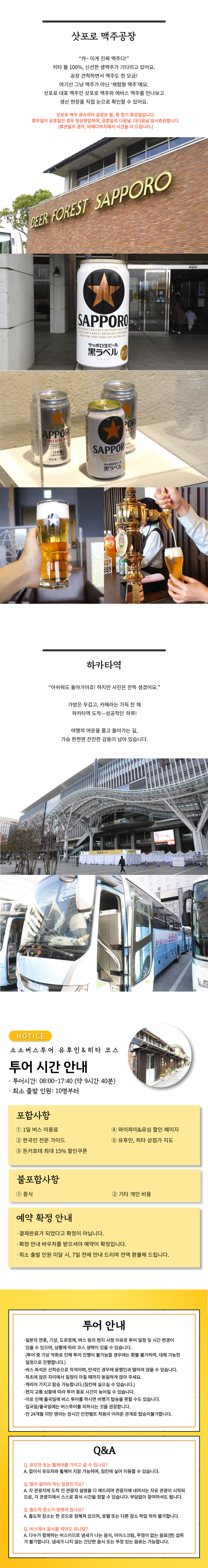 삿포로 맥주공장의 정기 휴관일은 월, 화요일 입니다.