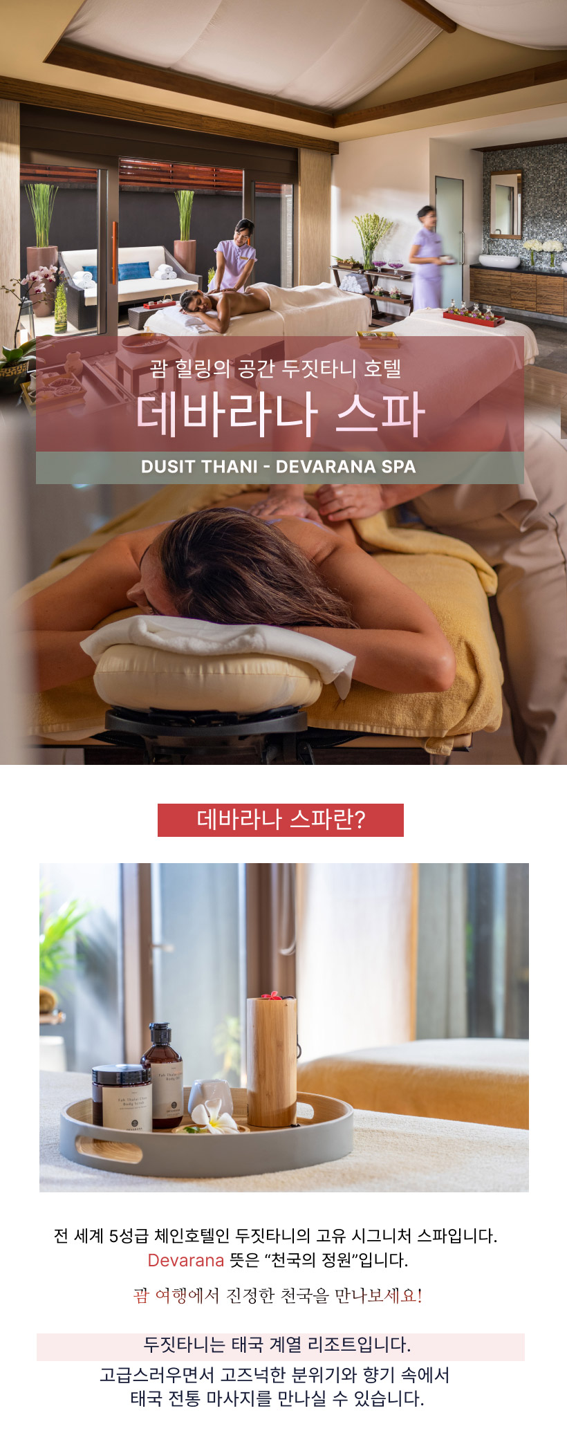 5성급 체인호텔 두짓타니의 시그니처 스파! 괌에서도 진정한 천국을 만나보세요! 고급스런 태국식 릴렉스 마사지로 혈액순환 해보세요!