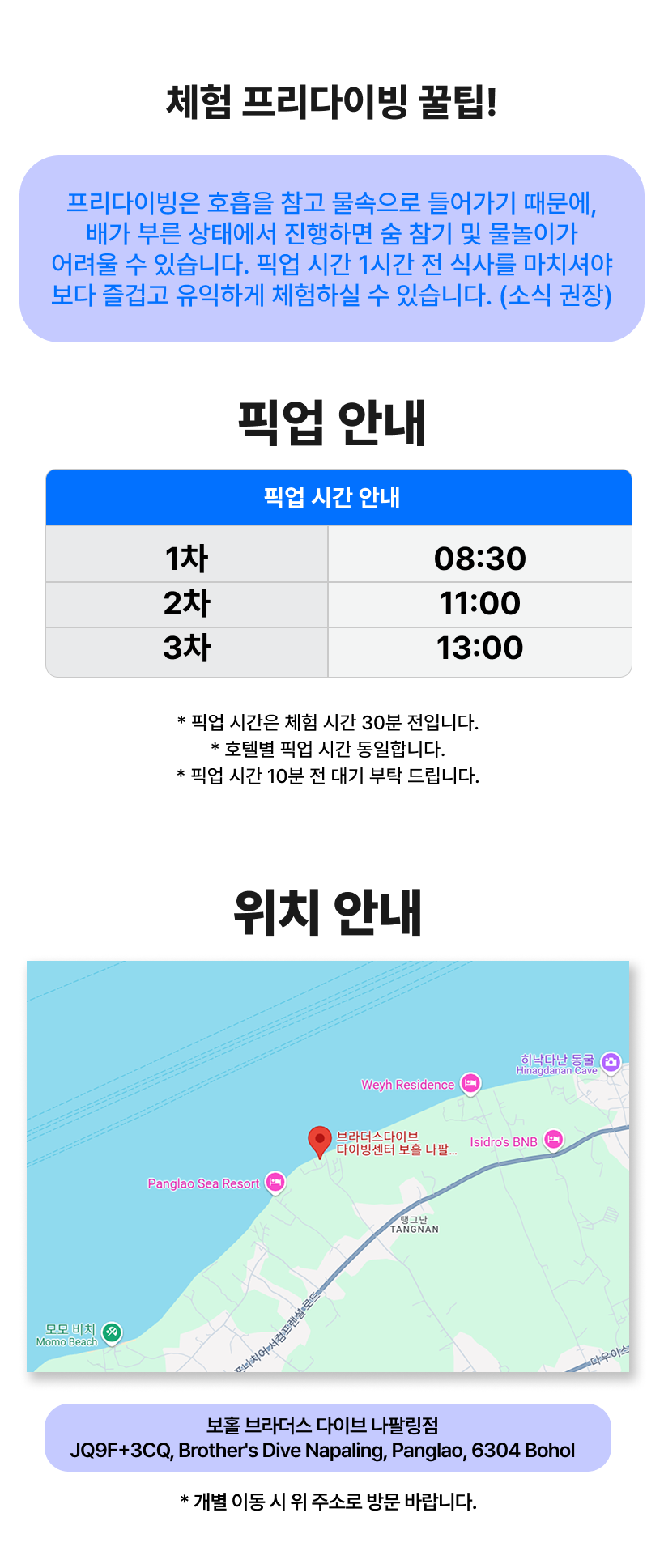 *픽업 시간은 체험 시간 30분 전입니다.