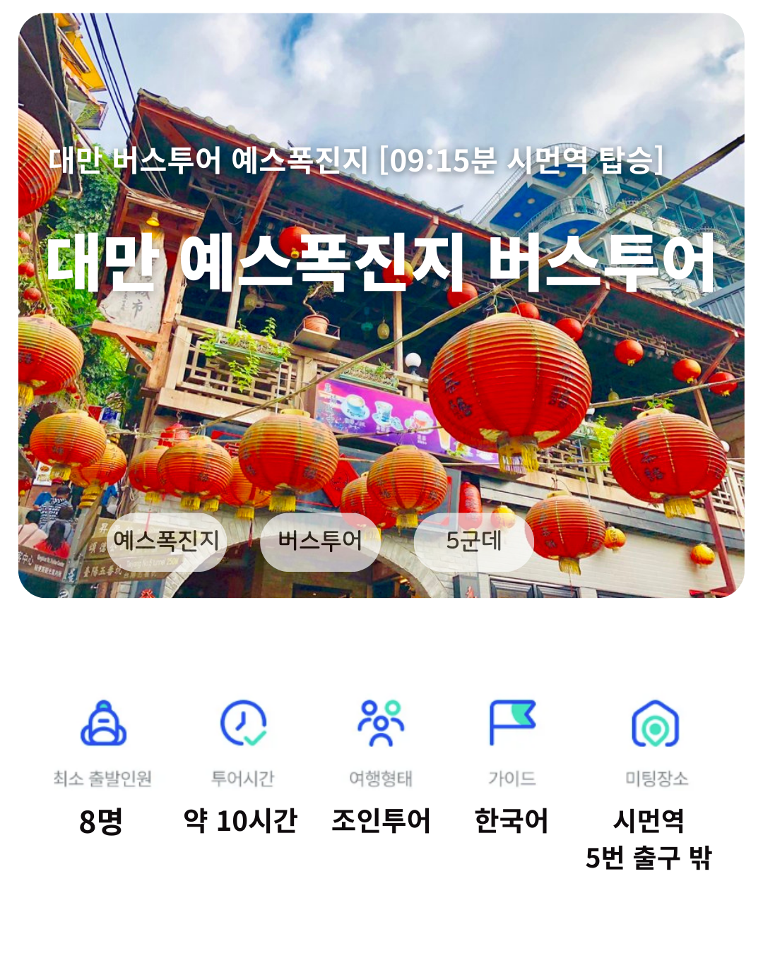 5곳의 핵심 명소를 모두 둘러보는 알찬 일정으로, 타이베이 복귀 시간은 당일 교통 상황에 따라 유동적일 수 있습니다.