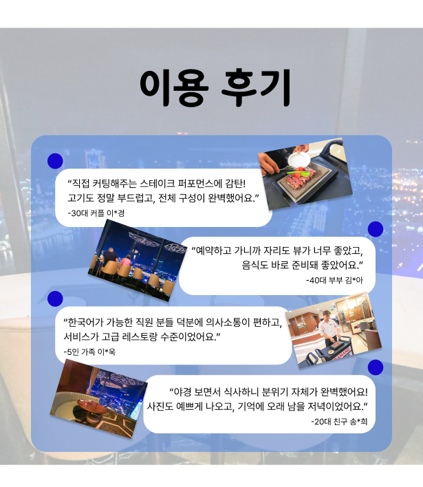 - 식사를 이용하는 고객께서는 알러지 정보를 사전에 미리 말씀해주시기 바랍니다.